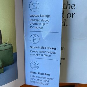 NWT - Open story travel backpack - water repellent - laptop storage - stretch side pocket 😎