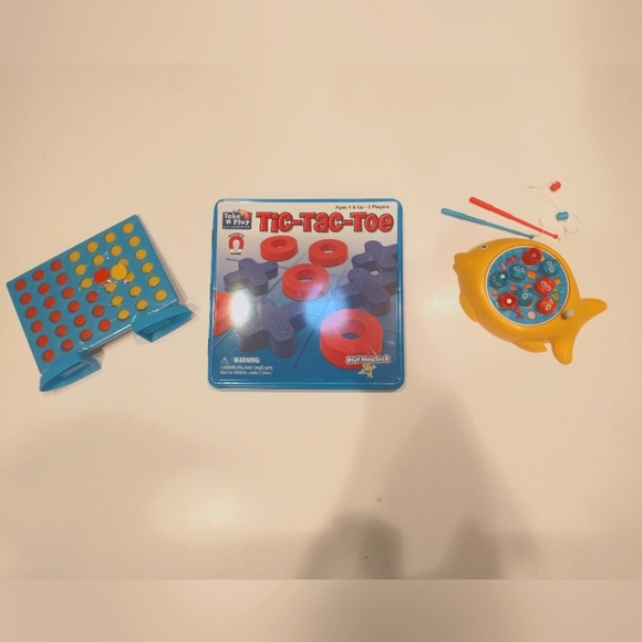 2 NIB TRAVEL GAMES (connect 4& tic tac toe) NEVER USED. FISHING GAME ONLY USED COUPLE TIMES.