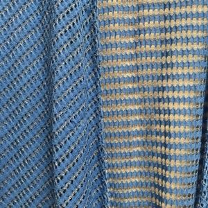 TRAVELER'S COLLECTION BY CHICO'S - Open and airy mesh fabric in beautiful ocean blue. Perfect for cool summer nights. With the look of a crochet stitch, this deep blue fabric has thin, silver threads running through it taking this cardigan up a notch. Brand New - Excellent Condition