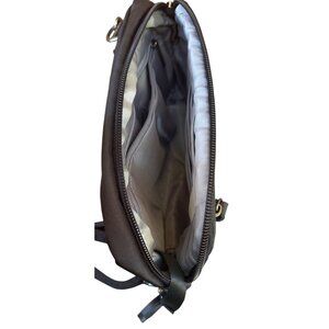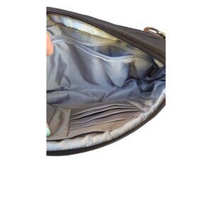 This Travelon crossbody bag combines security and style. Its RFID-blocking compartments protect cards from unauthorized scans, and the locking zippers enhance safety. The sleek black nylon exterior is durable and versatile, making it an ideal choice for travel. With ample space and organized slots, it offers a practical solution for carrying essentials securely.
