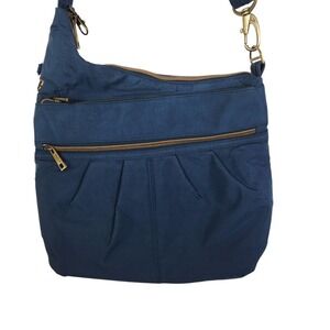 Travelon Messenger Crossbody Bag Womens Blue Nylon Anti-Theft Adjustable Strap