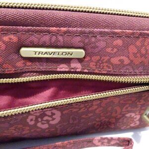 TRAVELON Pink Maroon Floral Print Zip Around Wallet Clutch Organizer Travel
