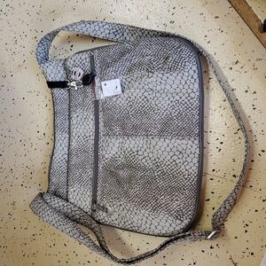 Travelon crossbody purse NWOT snakeskin print with mini flashlight adjustable strap expandable compartment lots of pockets