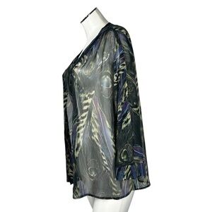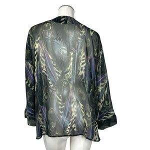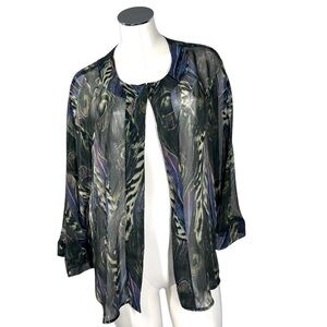 TRAVELSMITH Semi Sheer Open Front Peacock Feather Print Cardigan Women's Size 1X
