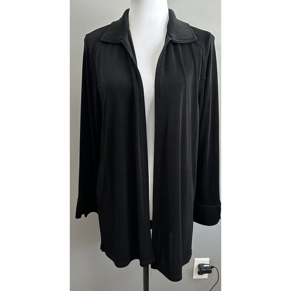 TRAVELSMITH Womens Open Front Black Liquid Knit Jacket Long Cardigan Size Large. No fabric tag but is the same material as a S Graver liquid knit Like new condition