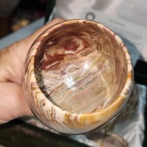 TRAVERTINE STONE NIB VINTAGE GOBLETS SET OF 2 DRINKWARE