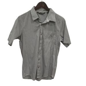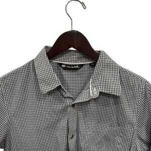 TRAVIS MATHEW Men's Gray and White Checkered Casual Button Down Shirt Size S
