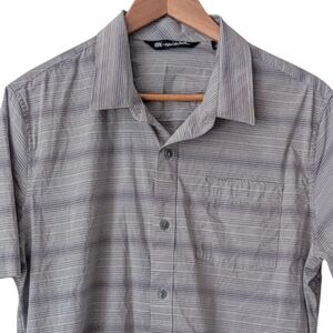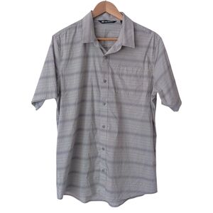 TRAVIS MATHEW Striped Shirt L Gray Button Down Short Sleeve Golf Stretch Men's Size Large