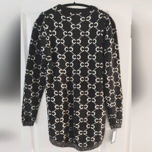 TRÏBE Black White Print Long Sleeve Crew Neck Sweater Size Large NWT