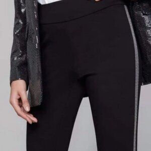 TRÏBE SOLID Black Leggings With Silver Tuxedo Stripe Size Large NWT