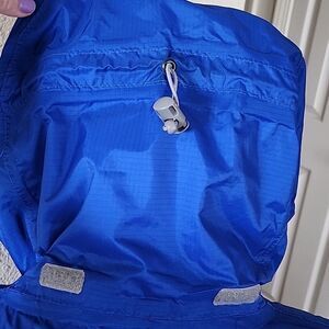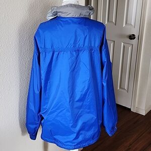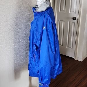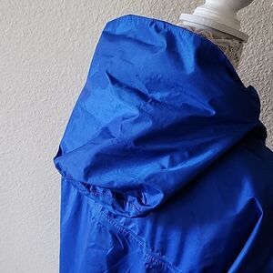 This has the ninja hoodie fit capability to keep the cold out, velcro adjustable wrists, cinching waist, velcro closure over zipper to keep the cold out, two safety pockets, and it all packs in to one big front pocket, and can be attached to other gear, or it has two beltloops to attach to your belt. Perfect for the outdoors people! Hiking, camping, backpacking! 31" in length. B62.1221
