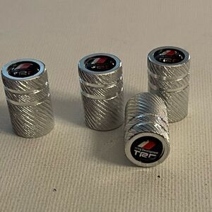 TRD Toyota key fob Keychain in Pink Leather with Logo and Silver Valve Stem Caps NWT
