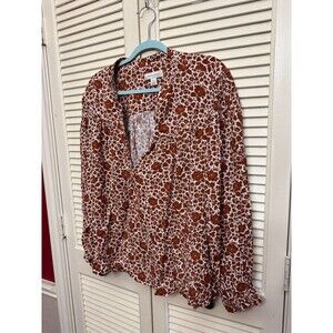 TREASURE & BOND Brown & Beige Shirred Floral V-neck Blouse w Shirt Tail Sz 3X