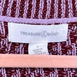 The perfect cozy sweater for the cold months! Maroon/lilac mixed knit sweater with a deep v neckline from TREASURE & BOND. Long sleeves, in excellent preowned condition. High quality and not see-through through the knit. Size small. Oversized fit.