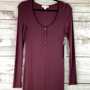 New, Treasure & Bond brand, size M, ribbed, long sleeves, bodycon, midi dress,burgundy color, scoop neck, 4 buttons on the front, very stretchy, NWT.