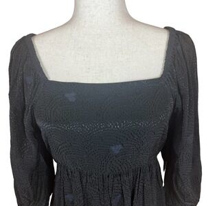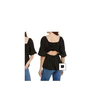 TREASURE & BOND SQUARE NECK PUFF SLEEVE HIGH-LOW BLOUSE BLACK SIZE M NWT