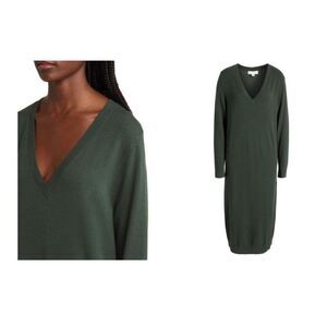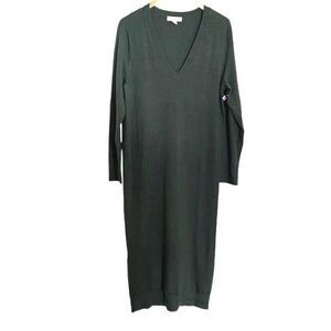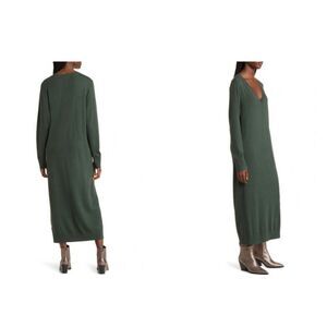 TREASURE & BOND Long Sleeve V-neck Midi Sweater Dress In Green Wood Medium