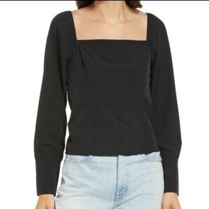TREASURE & Bond black size XL square neck crop blouse long sleeved NWT