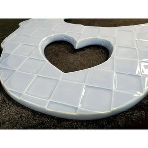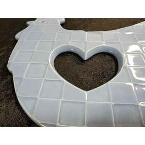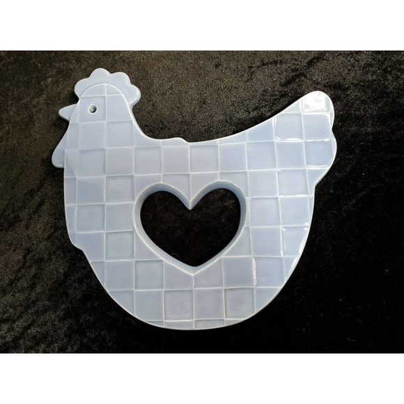TREASURE CRAFT CHICKEN TRIVET HOT PLATE COUNTRY FARMHOUSE RUSTIC CORNING BLUE. Made in the USA Open Heart shape in the middle. Vintage. Approximately 9x9