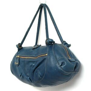 TREASURE TOPKAPI BLUE GENUINE LEATHER ZIP TOP SHOULDER BAG PURSE SATCHEL