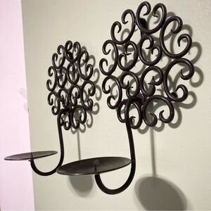 TREE OF LIFE Pair of Circle Candle Holder Wall Sconces 10 x 6.5 inches