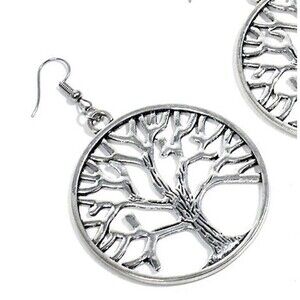 TREE OF LIFE Silvertone Round Drop Earrings NEW! 32
