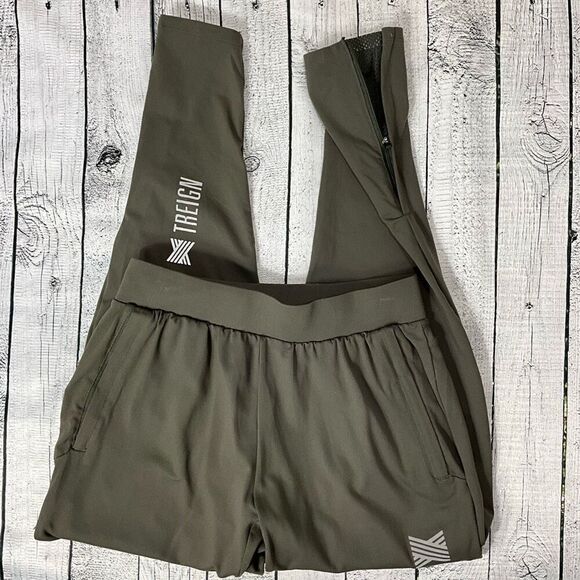 Men’s Treign athletic pants with bottom zippers, inside drawstring waistband, side pockets, and back zipper pocket. EUC, Size medium