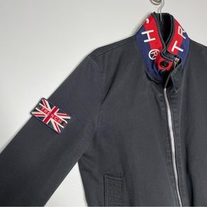 TRENCH London Mens Zip Up Bomber Jacket 100% Cotton In Black Size L