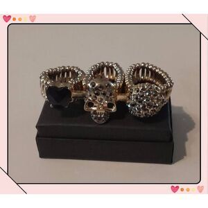 TRENDY Goth Punk Rocker Chick Black Spinel Gems Skull/Heart Triple Stretch Ring