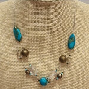 TRESKA Turquoise and Gold beaded multi strand illusion necklace new