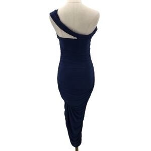 TRESSER S Navy Blue Sleeveless Ruched Bodycon One Shoulder Bodycon Dress NWT b80