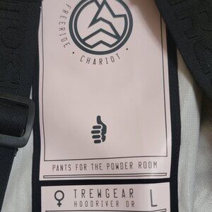 New, never worn. TREW gear womens chariot bibs size L - freeride powder room. Black with pink zipper ties.