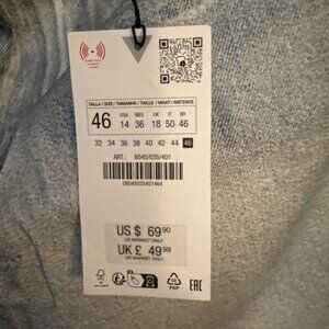 Five pocket jeans with a mid waist. Foil finish fabric. Front zip and metal button closure.