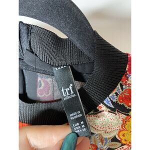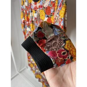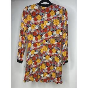 TRF Zara Pleated Long Sleeve Dress Women's Medium Yellow Red Floral Modern Mini. Nice condition. Zip closure.