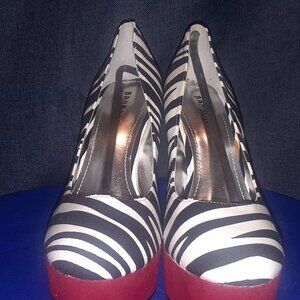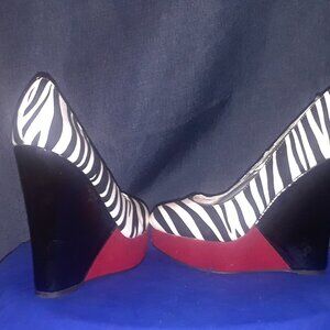 3 COLOR BLOCKED WEDGE ( ZEBRA BLK/WHITE , RED FAUX SUEDE and BLACK PATENT LEATHER