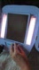 Jerdon tri-fold vanity mirror with lights. Features a sleek purple design.