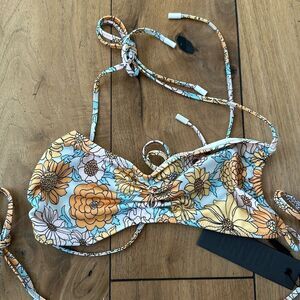 Please note the placement of the floral print will vary with each bikini top and bottom.