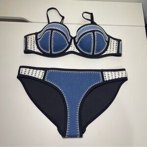 TRIANGL Women’s Blue & Black Crochet Trim Neoprene Bikini Set Size M/L Swimwear