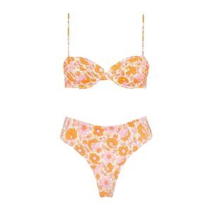 A bra style top with matching super high waist bottoms in printed floral. Featuring a non-padded cup with adjustable shoulder straps and back clasp fastening.