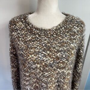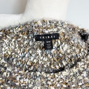 TRIBAL Brown & Purple Round Neck Long Sleeve Fuzzy Eyelash Sweater - MEDIUM