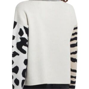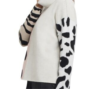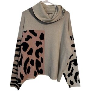 Stay stylish with this chic colorblock sweater featuring a bold animal print. Perfect for adding a touch of flair to your wardrobe.