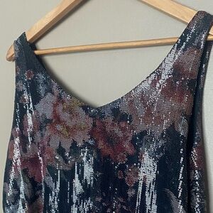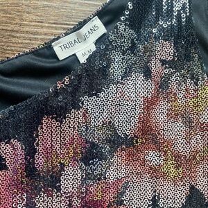 TRIBAL JEANS sexy sequin floral swing cami tank floral shiny sz M party date EUC