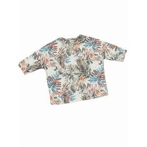 TRIBAL Jeans Short Drop Sleeve Tee Top Multi-color leaf print