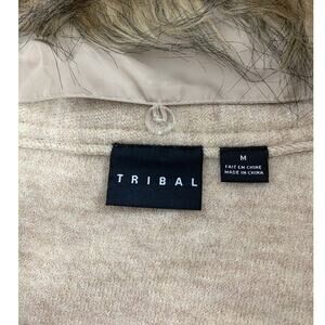TRIBAL Sweater Vest Womens Medium Beige Wool Knit Removable Faux Fur Collar