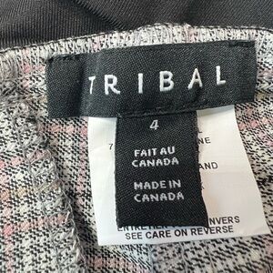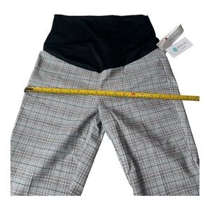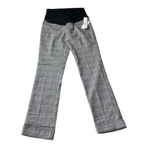 NEW TRIBAL X Stitch Fix Maternity cuffed pants in Windowpane Pattern in a Versatile Gray Black White Pinkish Red and Tan with back pockets - and stretchy black belly band also great for post partum when your just not ready for buttons just yet