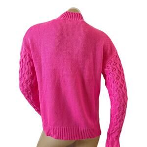 TRIBEKKA 44 Womens Size Small Hot Neon Pink Mock Turtleneck Pullover Sweater