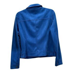 TRIBELLA Blazer Jacket Size L Faux Suede Micro-Denier Snaps Cobalt Blue