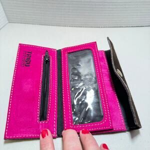 TRIBU BROWN LEATHER WALLET WITH HOT PINK ACCENTS See photos! Made in Ecuador - soft leather