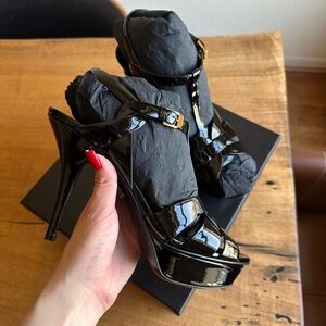 TRIBUTE PLATFORM SANDALS IN PATENT LEATHER BLACK