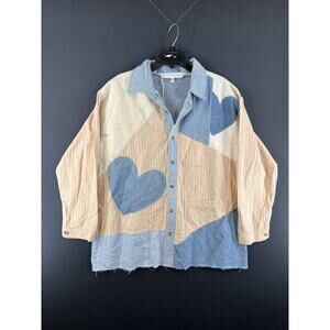 TRICIA FIX Heart Applique Button-Down Shirt - Neutral Combo Size X-Small